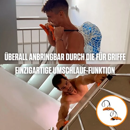 Die Angles90 Handgriffe „Grips“ sind frei bewegliche Griffe, welche mit einer Schlaufe versehen sind. Sie sind schnell an der Langhantel, Klimmzugstange oder Rudermaschine angebracht und eignen sich für jegliche Zugübungen an Trainingsgeräten, bei der man im Ober-, Unter- oder Neutralgriff nicht entfliehen kann. Ob Rudern, Klimmzüge oder Kreuzheben an Geräten – Vorteil der Angles90 ist, dass die Handgelenke durch die Handgriffe frei beweglich sind und somit auch in den Armen und Schultern. Besonders praktisch: Durch seine Ergonomie ermöglicht der Handgriff eine größere Zugkraft. Je nach Schwere des Workouts ist ein Wechsel zwischen dem Ergo- und dem Power-Griff, bei dem das Ende nach oben schaut, möglich. Aber auch Drück-Übungen am Kabelzug oder Schlingentrainer sind hervorragend möglich.