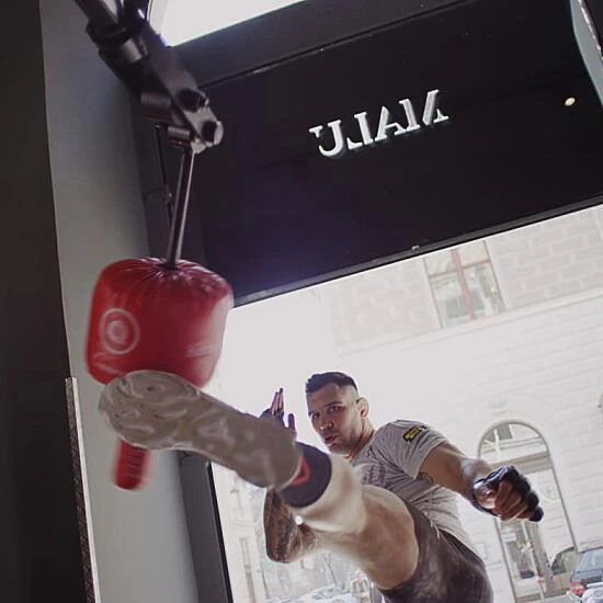 Der Quinns Boxtrainer „Kamikaze“ ist ein in alle Himmelsrichtungen frei beweglicher Punchzylinder für das Kampsport-Training in Sportarten wie z. B. Boxen, Kickboxen, MMAMMA, auch Mixed Martial Arts ist eine Vollkontakt-Wettkampf-Sportart. Sowohl Tritt- und Schlagtechniken aus dem Bereich Boxen, Kickboxen oder Muay Thai, als auch Ring- und Bodenkampftechniken finden hier ihren Einsatz., Taekwondo, Karate und Kung Fu. Bei sanften Schlägen schwingt der Punchkörper zurück. Durch Meidbewegungen des Oberkörpers und Kopfes übt der Sportler das korrekte Ausweichen und kann so ein besseres Distanzgefühl entwickeln. Kräftige Schläge oder Tritte machen den „Gegenangriff“ durch die mehreren, frei beweglichen Elemente und mögliche Überschläge unkalkulierbar. Der Sportler muss instinktiv und schnell reagieren – z. B. durch Rückschritte, Sidesteps, Deckungen und Co. Der Boxtrainer ist auch dauerhaft outdoor einsetzbar, sollte jedoch bei Minusgraden abgebaut werden.
