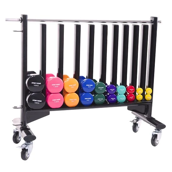 Für eine einfache und platzsparende Lagerung Ihrer Hanteln – Kaufen Sie sich jetzt den fahrbaren Ablageständer.
