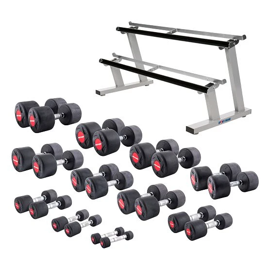 Mit diesem Hantel-Set ist jeder Freihantelbereich perfekt ausgestattet: Bestellen Sie noch heute das Sport-Thieme Kompakthantel Set Gummi.