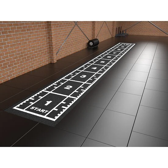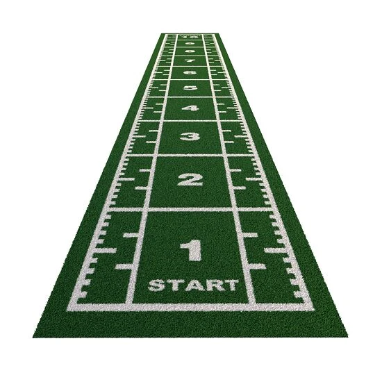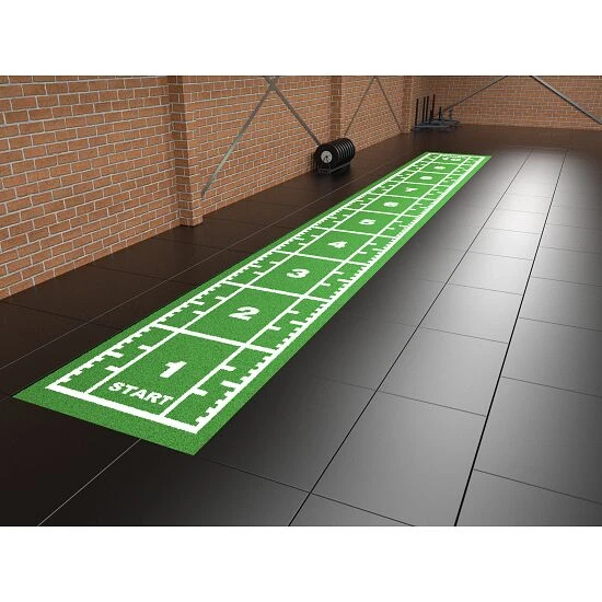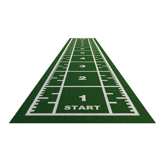 Die Sport-Thieme Sprintbahn „Premium“ verfügt über ein sehr ausführliches Markierungsmuster, sodass Sie Ihr Schlitten-, Geschwindigkeits- und Schnelligkeitstraining genau durchführen und analysieren können. Die kurzflorigen Kunststoff-Fasern aus Polyethylen (PE) bieten jederzeit einen guten Grip während der Übungen. Auch starke Reibung z. B. durch einen Gewichtsschlitten kann der Sprintbahn nichts anhaben. Auf der Unterseite sorgt eine Latexschicht für den notwendigen,rutschfesten Kontakt zwischen Laufbahn und Untergrund. Die UV-beständige Kunstrasen-Laufbahn können Sie in- und outdoor einsetzen.