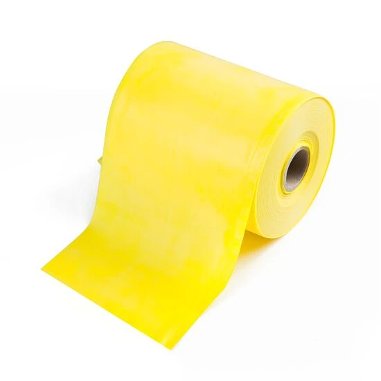 Die TheraBand Rolle Übungsband in 45,5 m ist aus dem Naturprodukt LatexGebräuchliche Bezeichnung für Gummi. Latex ist der Milchsaft des Kautschukbaums und ein Bestandteil von Gummi. Er wird nach dem Trocknen als Kautschuk bezeichnet. gefertigt. Das Widerstandsband ist mit Talkum/Puder versehen und sollte daher auch regelmäßig mit dem Puder behandelt werden – so erhöhen Sie die Haltbarkeit und beugen einem Verkleben durch Schweiß und Feuchtigkeit vor. Dafür eignet sich Babypuder ideal. Zum Zuschneiden eignet sich eine Haushaltsschere. Beachten Sie, dass Sie das Übungsband flach und ohne Dehnung ausbreiten. Die 45,5 m lange und 12,5 cm breite Rolle lässt sich dabei auf beliebig viele Bänder in unterschiedlichen Längen zuschneiden – ein Vorteil beim Training mit größeren Gruppen.